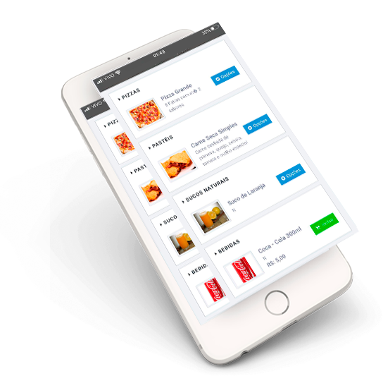 Para continuar a crescer o seu estabelecimento precisa se modernizar e contar com um delivery próprio, livre de comissionamentos. Cadastre produtos, descrições, fotos e muito mais. Personalize seu cardápio ou catálogo e explore ao máximo as funcionalidades e recursos, oferecendo opções de delivery ou retirada no local ao seu cliente.