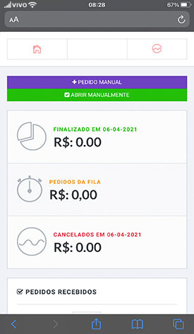 - ● Você recebe o pedido no seu WhatsApp ou no Painel Administrativo